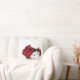 Long haired, blue eyed white kitty cat plays with the poinsettia Christmas decorations photo holiday throw pillow