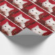 Odd eyed, one blue eye and one gold eye, white kitty cat with Christmas colors and decorations cat lovers Christmas holiday wrapping paper
