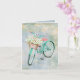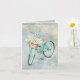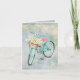 White Persian cat in daises on green bicycle on textured abstract background for thinking of you
