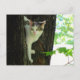 This postcard was created from photograph of a white and gray kitten in my maple tree. .