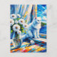 White Cat in Window sill Looking out at the Ocean Postcard