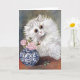 A blank greeting card with the painting by British artist Louis Wain (1860-1939), White Cat. A lovely portrait of a white Persian cat next to a blue and white porcelain vase with pink roses. Wain was known for his large-eyed cat illustrations.
