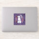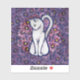 White Cat Mauve Daisies Sticker
