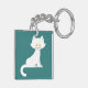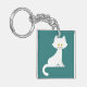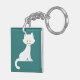 keep your keys organized and adorable with this custom keychain featuring a minimalist white cat illustration. the flat vector design showcases a sweet kitten with bright yellow eyes on a vibrant teal background, making it easy to spot in your bag or purse. this durable and lightweight accessory is a charming gift for feline lovers, cat moms, or anyone who appreciates clean and whimsical animal art. it is a perfect small token for birthdays, holidays, or a treat for yourself to add a touch of personality to your daily essentials.