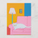 White Cat on a Pink Couch Postcard