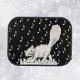 This vintage black and white image has a winking cat dancing across the keys of a piano. The background is black with white musical notes. See my store Art by MAR for matching products with this design.