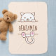 Simple cartoon illustration of a cute white cat peeking from behind a divider. Customize with your baby’s name.