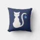 A silhouette of a white cat on a navy blue background. The cat sits with tail raised. An ice blue star is attached to the tail.
