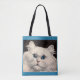 white cat with blue eyes tote bag