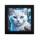 Pretty white cat surrounded by flowers with pretty blue eyes ai art.