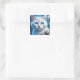 White Cat with Bright Blue Eyes Floral Square Sticker