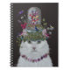 Cat, White with Butterfly bell jar, on black by FabFunky. Features a fabulous white cat with birds, greenery, and butterflies atop its head. | 191532D