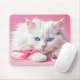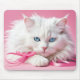 White Cat With Pink Ribbons Mouse Pad