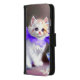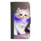 White Cat with Purple Flower Collar Painting iPhone Wallet Case
