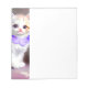 Notepad featuring a gorgeous white kitten! A fluffy kitten wears a purple flower collar. A blue bowl of white and purple flowers sits to the right. A marvelous gift for cat lovers and Victorian art enthusiasts!