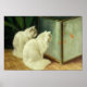 White Cats Watching Goldfish Poster