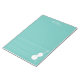 This pretty aqua notepad has an intricate cello design that looks like layered paper cutouts with a horizontal white bow elegantly underlining your name.