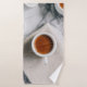 WHITE CERAMIC TEACUP FILLED WITH RED LIQUID BATH TOWEL