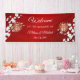 This Chinese wedding banner features pretty white cherry blossoms and gold double happiness symbols on a shimmering ruby red background. Many matching products available.