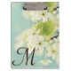 White Cherry Blossom Flower Floral Tree Branch Spring Nature Monogram Initial Clip Board Personalized