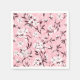 White cherry blossom branches painted with watercolors and ink on a pink background