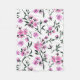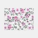 White cherry blossom branches painted with watercolors and ink on a pink background