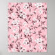 White cherry blossom branches painted with watercolors and ink on a pink background