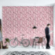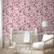 White cherry blossom branches painted with watercolors and ink on a pink background