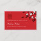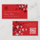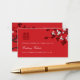 White cherry blossoms or sakura spring flowers and simple double happiness on a red background. A modern chinese wedding double sided wedding website enclosure card.
