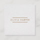 Elegant and Minimal business cards for feminine business, shop or other business feature a white leather look texture with refined typography in trendy copper color.