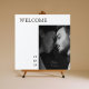 Modern and minimalist. This chic and stylish wedding welcome yard sign with couple photo, features a set of contemporary fonts in, against a crisp white background. Tip: If you would like to increase the size of the product, remember to also increase the resolution of your photo to avoid pixelation and for best results.