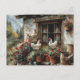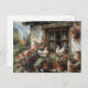White Chickens on Windowsill Red Flowers Clay Pot Postcard