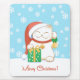 White Christmas Cat in a Red Hat Mouse Pad