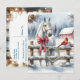 Personalized farming themed Christmas postcard with a pretty white horse, a pretty red cardinal on the fence and a rustic barn in the background of a snowy winter day done watercolor ai art.