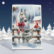Christmas gift bag with a pretty white horse, a pretty red cardinal on the fence and a rustic barn in the background of a snowy winter day done watercolor ai art.