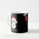 Cute White Christmas owl on black background Mug. Text can be personalized. Merry Christmas!