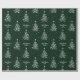 White Christmas Tree Pattern Custom Text Green Wrapping Paper