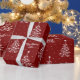 This Christmas wrapping paper features a white pine tree and white snow pattern with custom text on a red background (Changeable background color). For more advanced customization of this design, please click the "customize further" link.