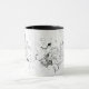 Like drinking from a sparkling white chrome cup! This is a white, gray and black abstract spiral design.