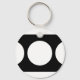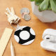 This bold geometric pattern features a white dot in the center and two white half circles on the edges of a black background.