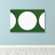 This bold geometric pattern features a white circle in the center and two white half circles on the edges of a green background.