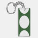 This bold geometric pattern features a white circle in the center and two white half circles on the edges of a green background.