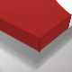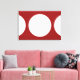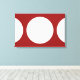 This bold geometric pattern features a large white dot in the center and two white half circles on the edges of a red background.