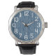 This men's watch has an art deco design that looks like likes on a circuit board. The lines are running vertically in white on a field of blue. Want a different color? Message me.