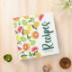 A personalized recipe binder with citrus fruit pattern featuring colorful oranges, lemons, tangerines and grapefruit.