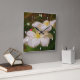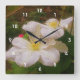 Delicate white clematis in bloom with a printed textured look flower art wall clock. Click on Customize to add text. Please visit my store at Smilin' Eyes Treasures to see more flower, animal, nature, and digital art design cards and gifts for home and office. Links to all of my stores are located on my Profile page.