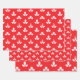 A vermillion red and white wrapping paper sheet trio featuring a white stamped clover motif on a vermillion red background.