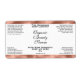 This elegant product label for cosmetic bottles features a white background with faux copper foil borders. This label contains space for your product name, business name, product weight, ingredients, instructions, social media, and business address. This label measures 3.75 inches by 2 inches (95 mm by 51 mm) and is suitable for bottles with a diameter of 1.2 inches (31 mm) or more such as 2 to 4 oz (60 to 120 ml) bullet, cylinder, and boston round bottles. It can also be used for cosmetic jars and other types of cosmetics packaging.