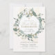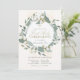 This elegant first holy communion invitation features a natural white background with a wreath of cotton flowers, blue green foliages / leaves / greeneries, and faux gold berries. The reverse side features a light beige background with honeycomb patterns. Change the background color and personalize it for your needs. You can find matching products at my store.
