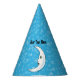 White Crescent Moon With Face Stars Aqua Blue Party Hat